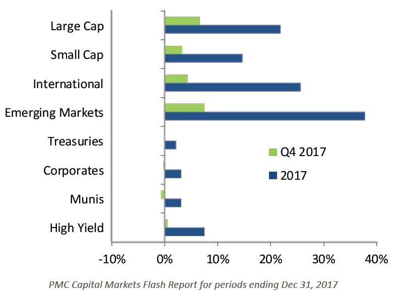 Hurricanes, fires, earthquakes, marches, market growth, a new tax plan and some unbelievable tweets – 2017 was an unforgettable year. Markets typically do not like uncertainty, but were strong through a year of swirling unpredictability. What happened and what comes next?